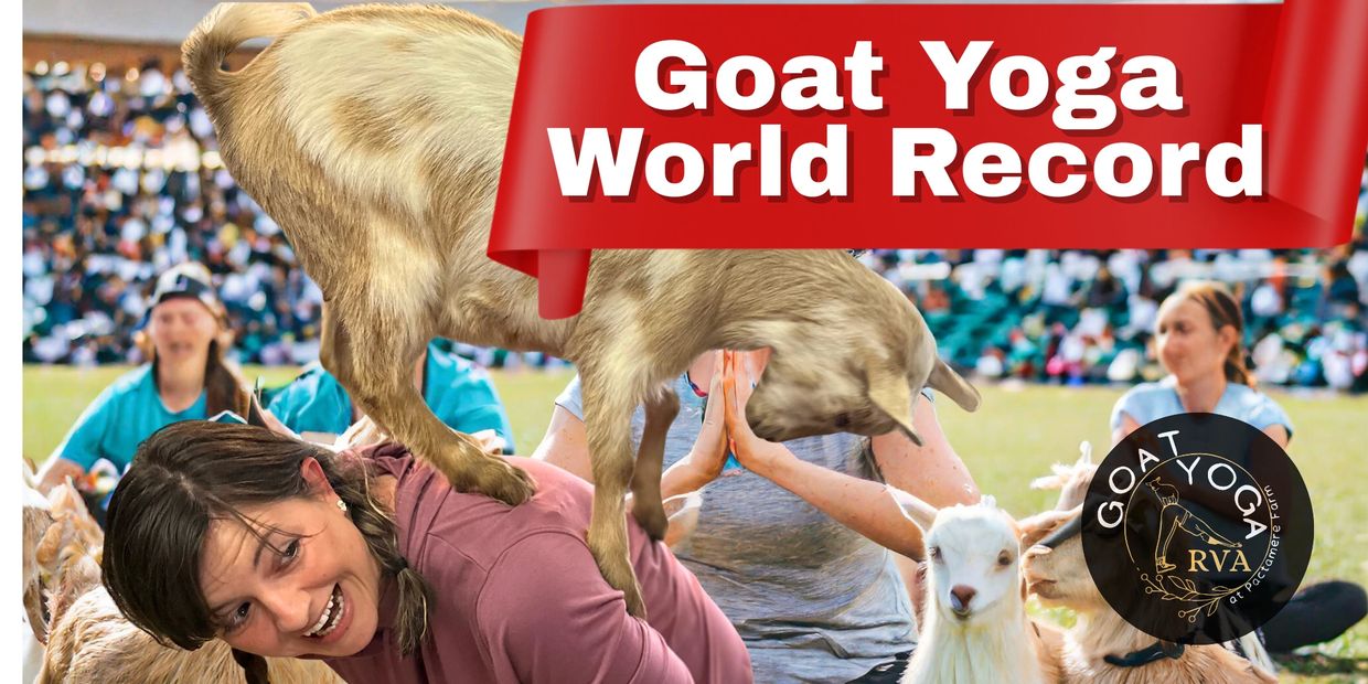 Our ambition is to set a World Record for the Largest Goat Yoga Class ever conducted. The current record stands at 501 participants, and we are confident we can surpass it! This is a significant achievement for goat yoga RVA and our community. All proceeds will support Pactamere Cares, nonprofit organization that offers animal-assisted therapy to those in need.